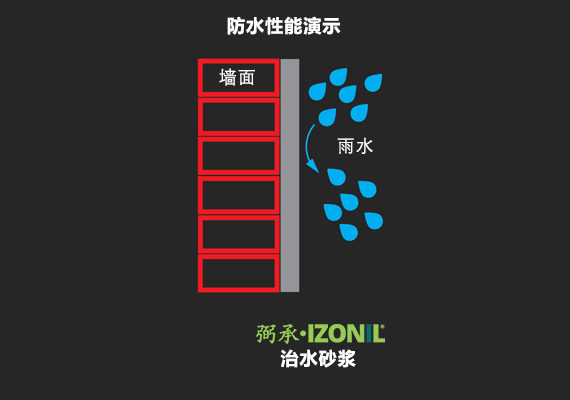弼承IZONIL治水砂漿不但具有防水、除濕(干燥)、透氣、抗硫磺與鹽結(jié)晶、抗硝酸鹽粉化、防霉等特性,還具備0.5Mpa抗水壓能力,無論是用于新建筑還是舊建筑的內(nèi)墻、外墻、地下室、地基、游泳池、水庫、地下車庫、浴室和廁所、平頂屋、露臺和陽臺、地板,都可以得到集防水抹灰一步到位的,革命性和創(chuàng)新性防水防潮解決方案。